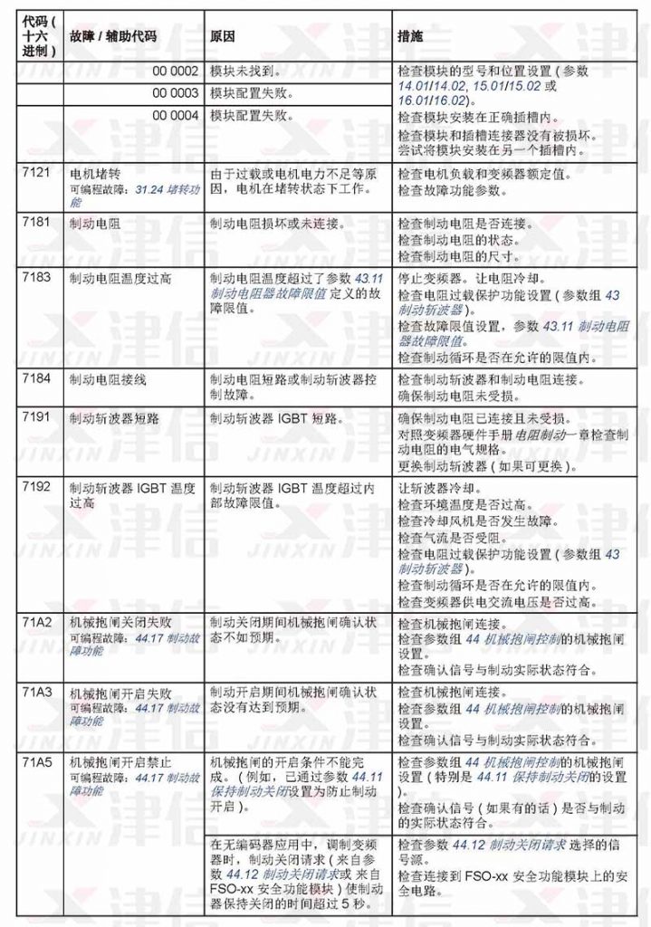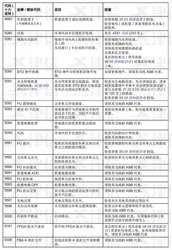 ABB ACS530在使用過程中遇到故障,可以通過以下故障代碼來對故障進行分析,并采取相應維修措施進行修復。