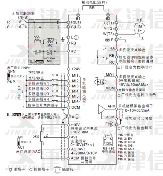 - 主回路配線與控制回路的配線必需隔離,以防止發生誤操作。